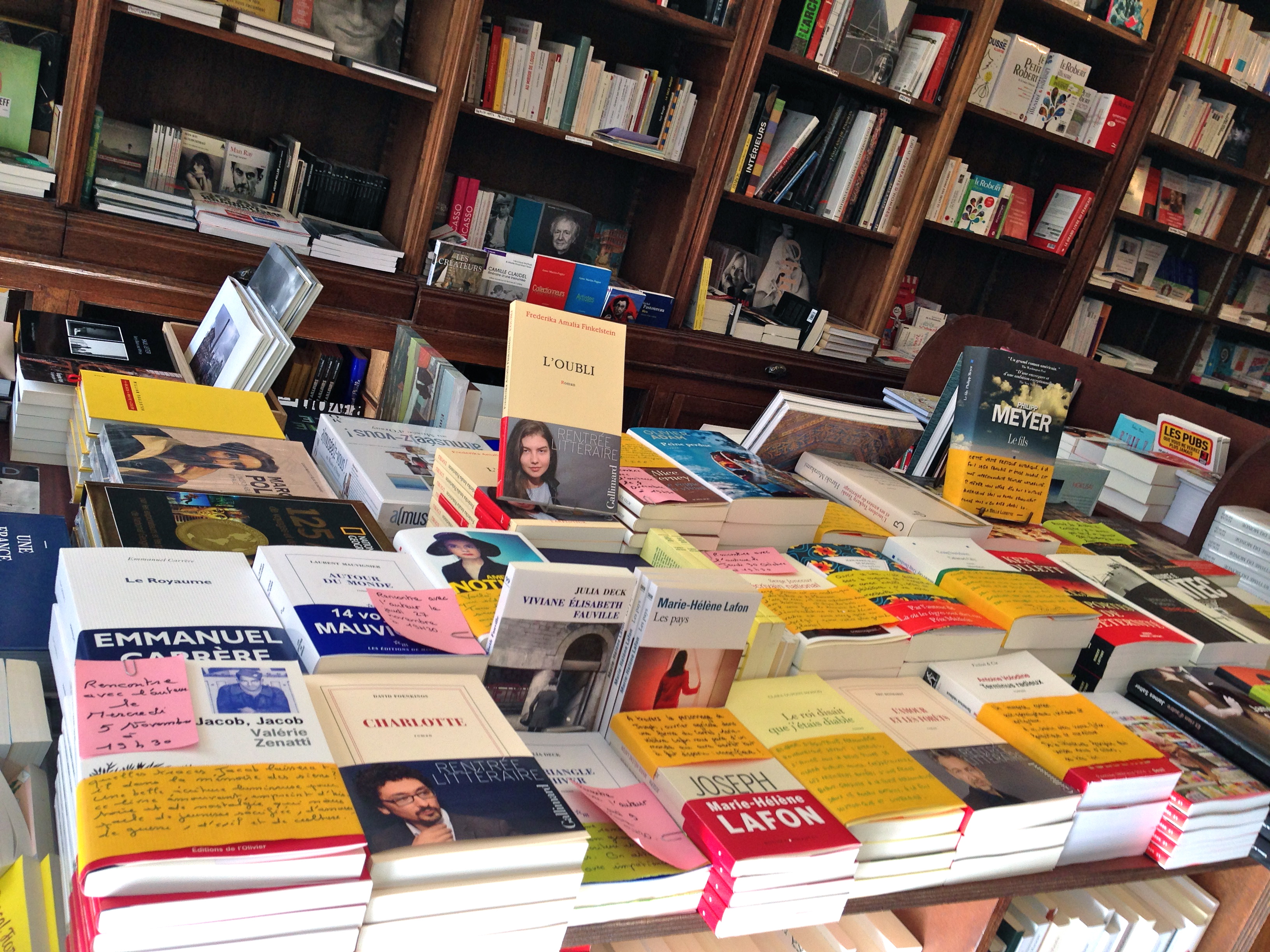 Rotting leaves create fertile soil. Moribund or sclerotic societies are often associated with an outpouring of fresh art. So in the Weimar era, so during the Soviet Union. In France, this Rentree, there’s a remarkably rich and audacious theater season moving into full swing with full houses–because however broke Parisians are, they’ll wangle a ticket for a show. And the literary Rentree is a stunning spectacle in itself, with new books cascading into and practically sliding off the tables of the bookstores–607 novels alone!