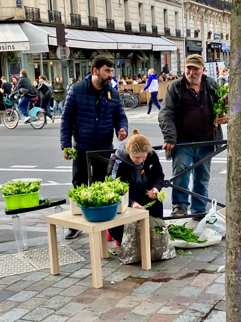 May 1st has forever been a big day in France. Long before the invention of trade unions (credited today to the USA by a Paris radio station!) and street demonstrations, it was a day of festivities and magic. Pots and bunches of lilies of the valley are sold on street corners now as centuries ago, originally to erase the accumulated curses of the winter with their purity and delicate perfume, now, plus ça change, to bring good luck.